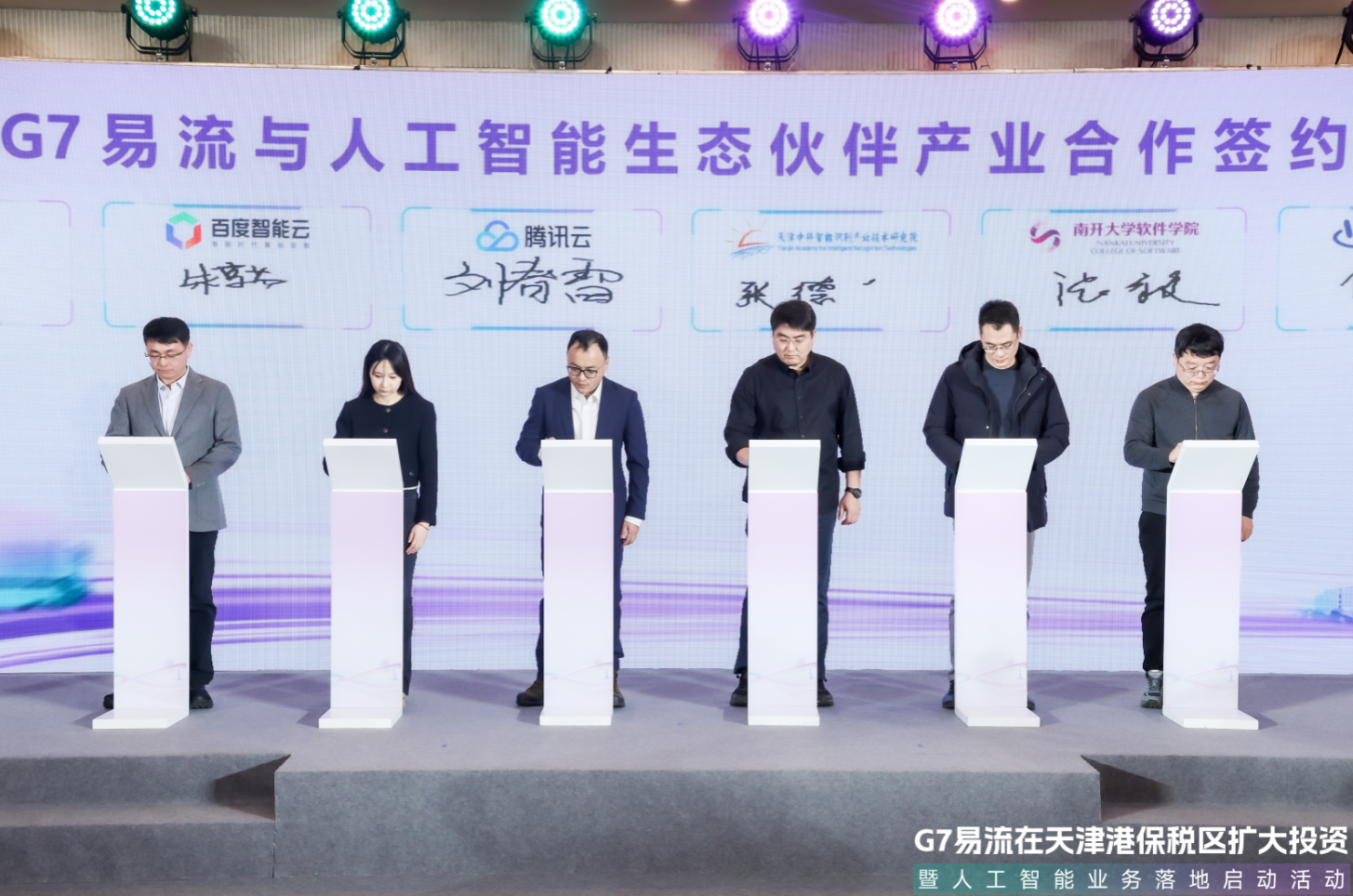 作为物流科技领域的代表企业,G7易流自2019年进入天津以来,在天津市、滨海新区及保税区各级党委政府支持下,实现跨越式发展。2024年,G7易流天津业务总部营收达151.6亿元,纳税14.78亿元,位列天津市民营企业纳税第三名。活动现场,G7易流与中科院中科智能识别产业技术研究院、南开大学软件学院、腾讯云、百度云、深圳有为等人工智能生态伙伴签署合作意向,展现了“算法+硬件+平台”协同创新链条的成型,各方将携手推动AI技术在物流场景中的规模化应用与产业化突破,构建开放共赢的产业生态。