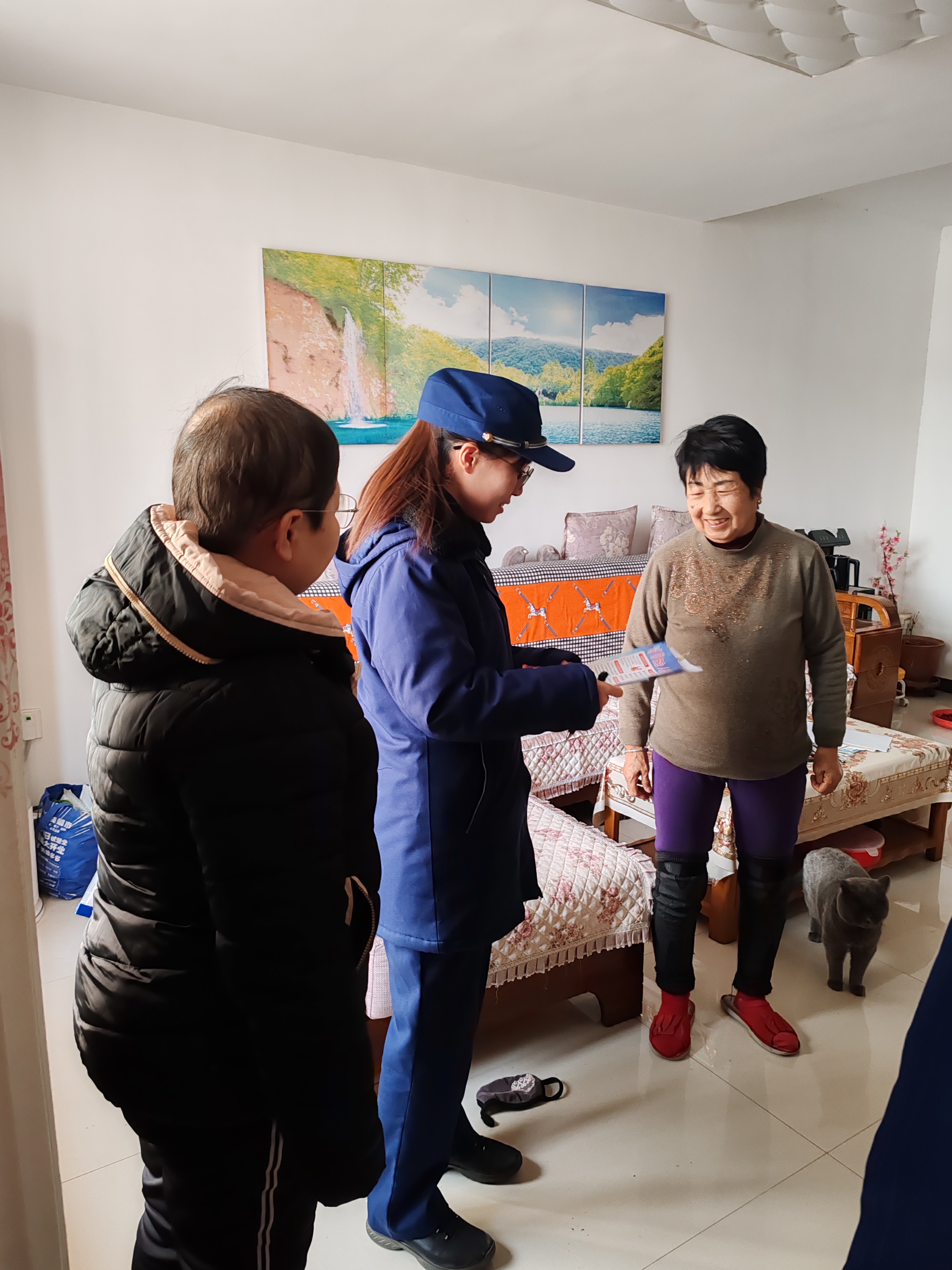 社区工作人员联合消防人员积极行动,深入居民家中开展“一对一”消防安全知识普及,向居民发放消防安全宣传页,讲解家庭火灾的常见原因、初期火灾的扑救方法及火场逃生自救技巧等实用知识。针对老年人群体,社区工作人员更是重点强调了用电、用气安全,提醒居民定期检查家中电器线路,不私拉乱接电线,不卧床吸烟,并嘱托他们及时对冬季取暖电器进行检查,保障安全过冬。