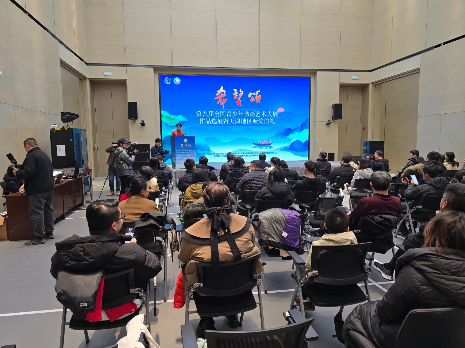 津滨网讯(记者 周华婷 张鹏 实习生 李兰馨 报道 贾磊 摄影)12月21日,“希望颂”第九届全国青少年书画艺术大展作品巡展暨天津地区颁奖典礼在滨海美术馆举行。