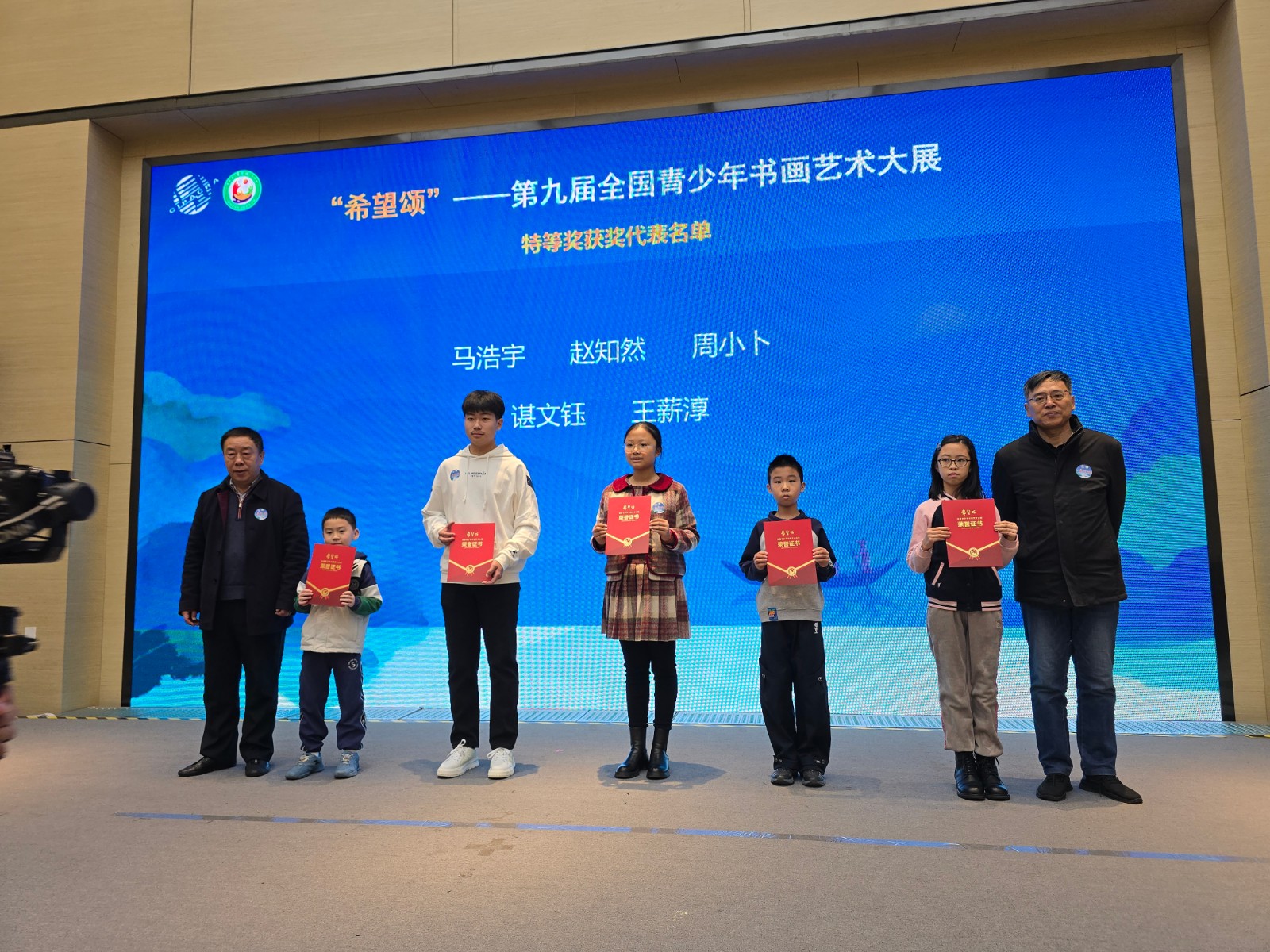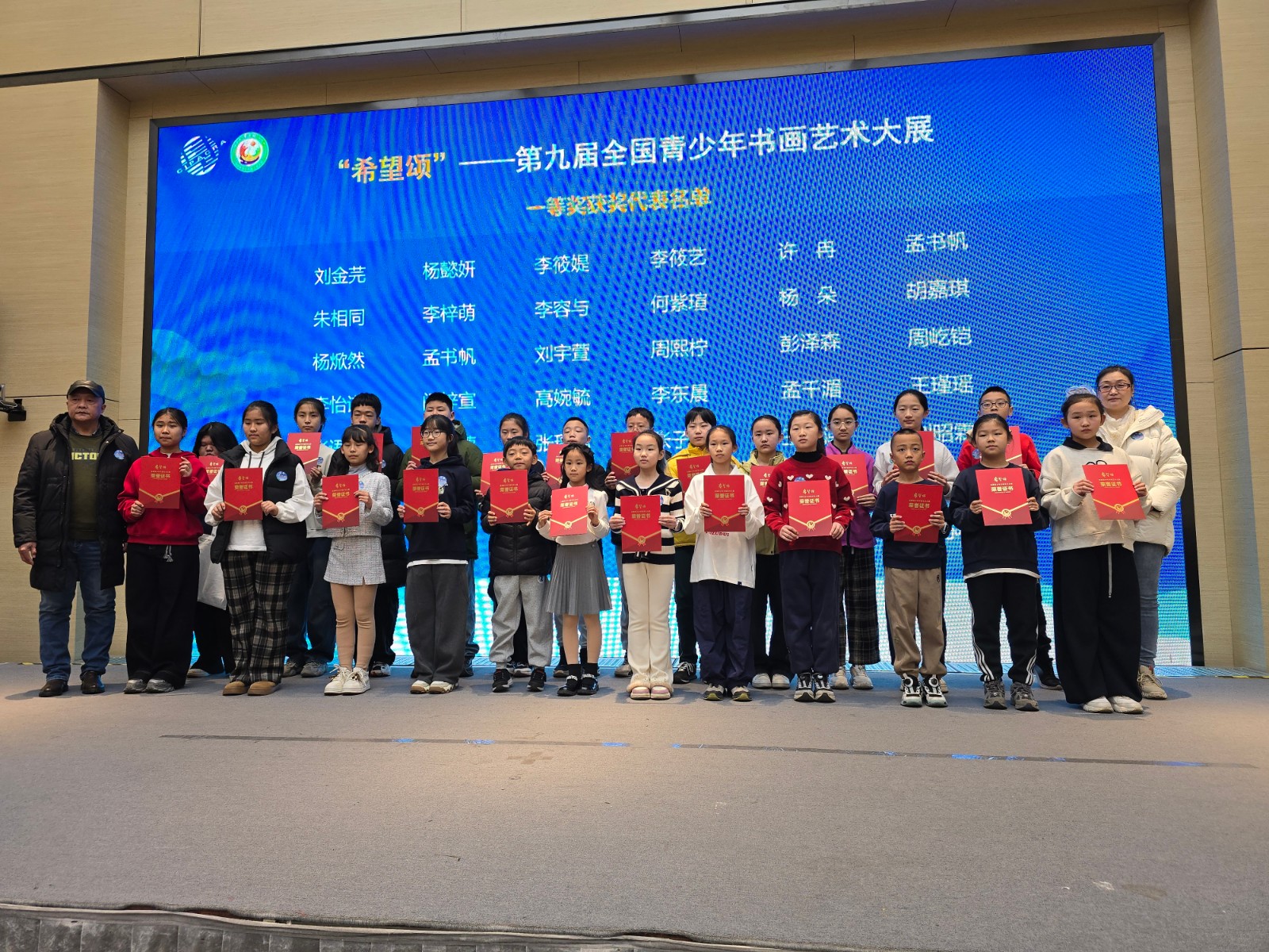 颁奖典礼上,“希望颂”大展天津展区的获奖学生、书画特色校(宫)、优秀美育组织机构、优秀论文获奖教师以及优秀指导老师代表接受了现场颁奖。